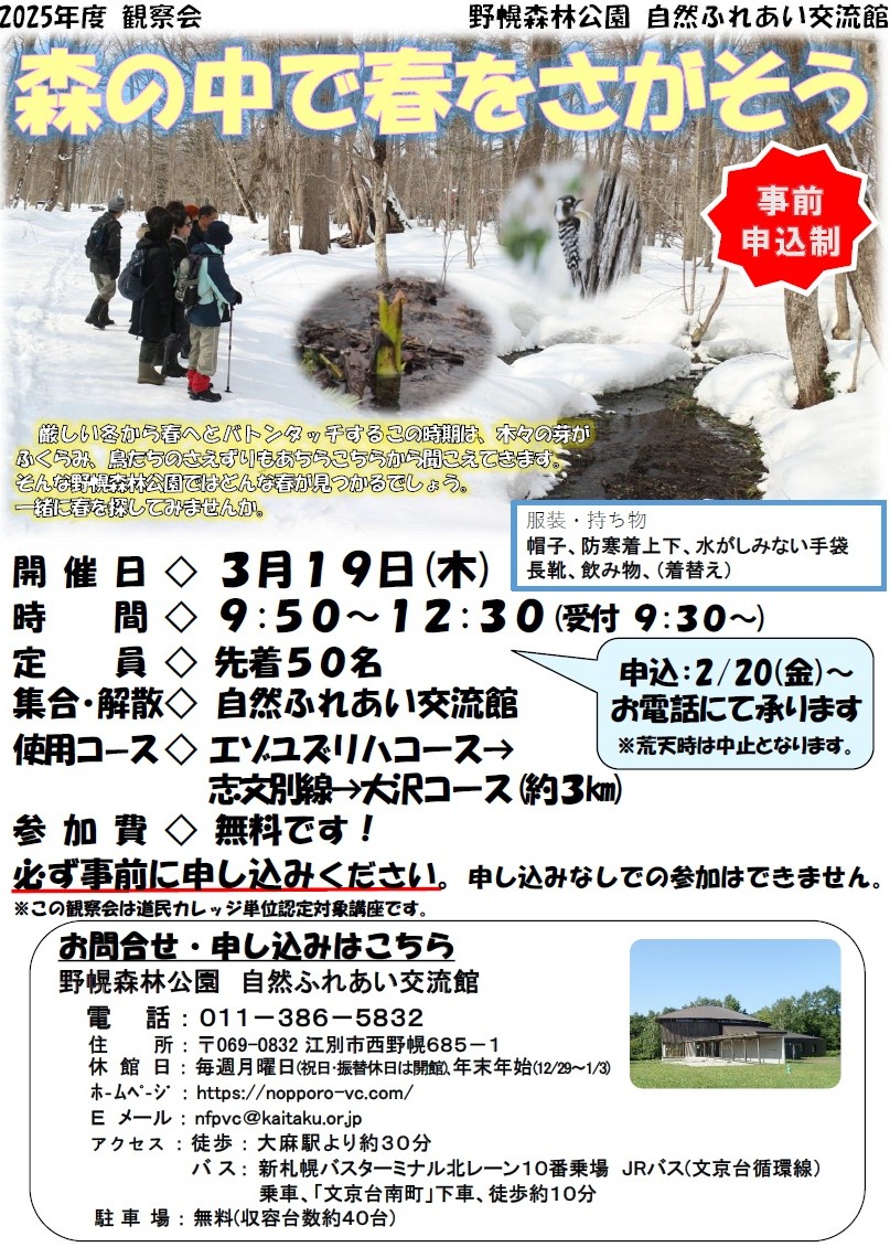 - 申込先:自然ふれあい交流館 TEL011-386-5832