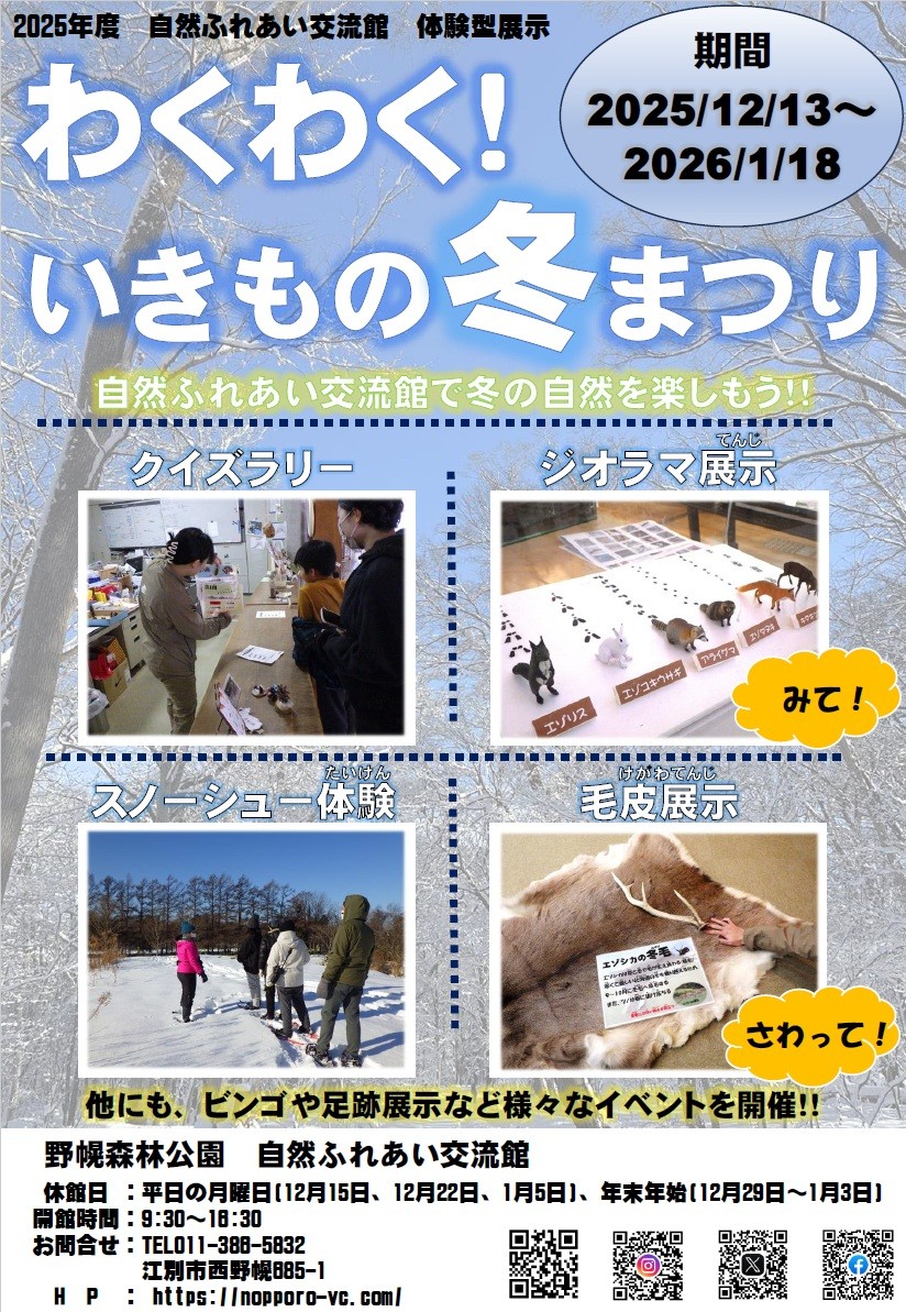 参加は無料ですので(もちろん入館も無料)、この冬は、自然ふれあい交流館に、レッツゴー!!