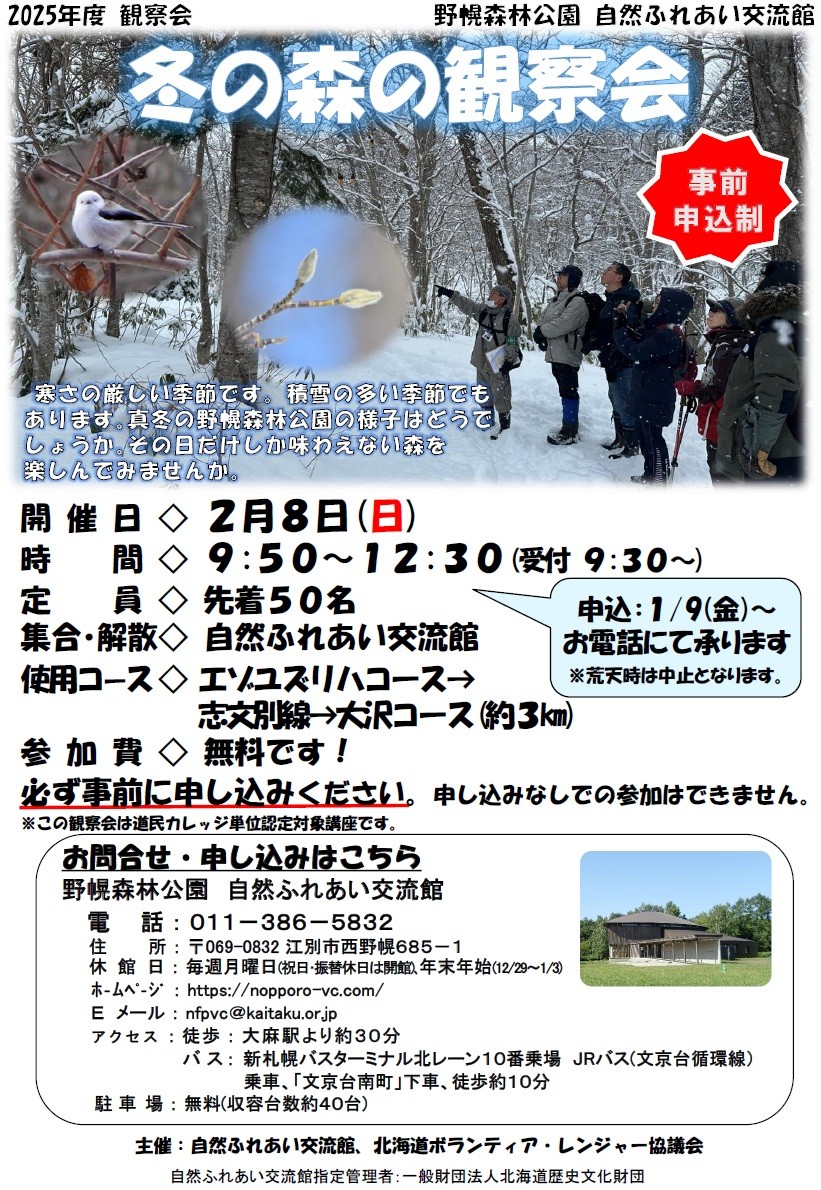 - 申込先:自然ふれあい交流館 TEL011-386-5832