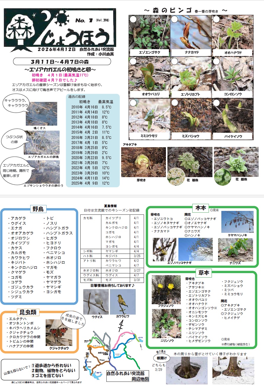自然ふれあい交流館スタッフが、野幌森林公園内の自然情報をまとめた最新の情報です。